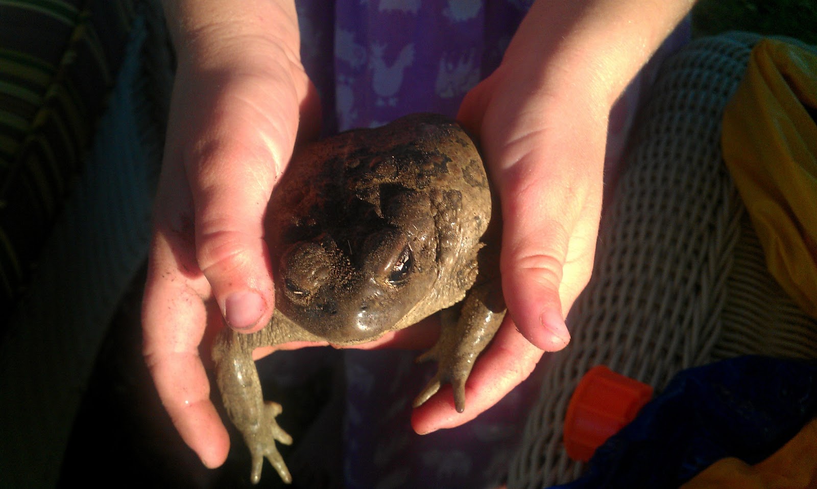 On another day, we were tearing out some dead plants. My son and daughter pulled up a dead lavender plant and found a very fat toad. He was safely hiding amidst the roots.